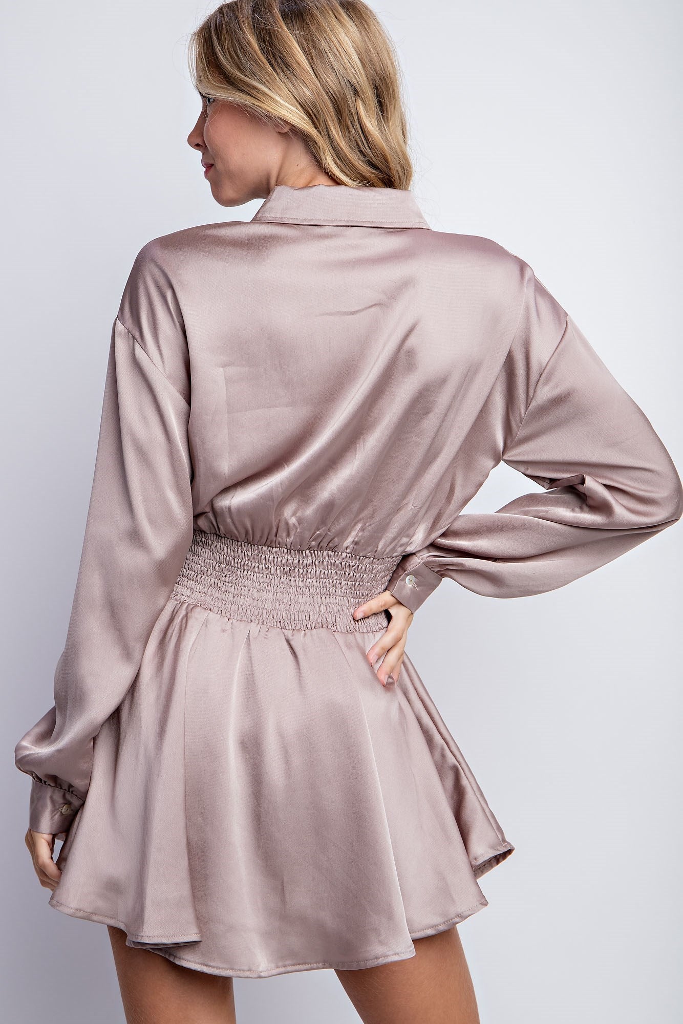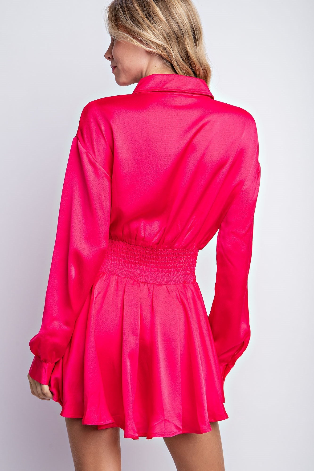 Introducing our Smocked Flowy Shirt Romper, a versatile and fashionable ensemble that effortlessly combines comfort and style. This romper is designed to be your go-to choice for a chic and relaxed look on any occasion.