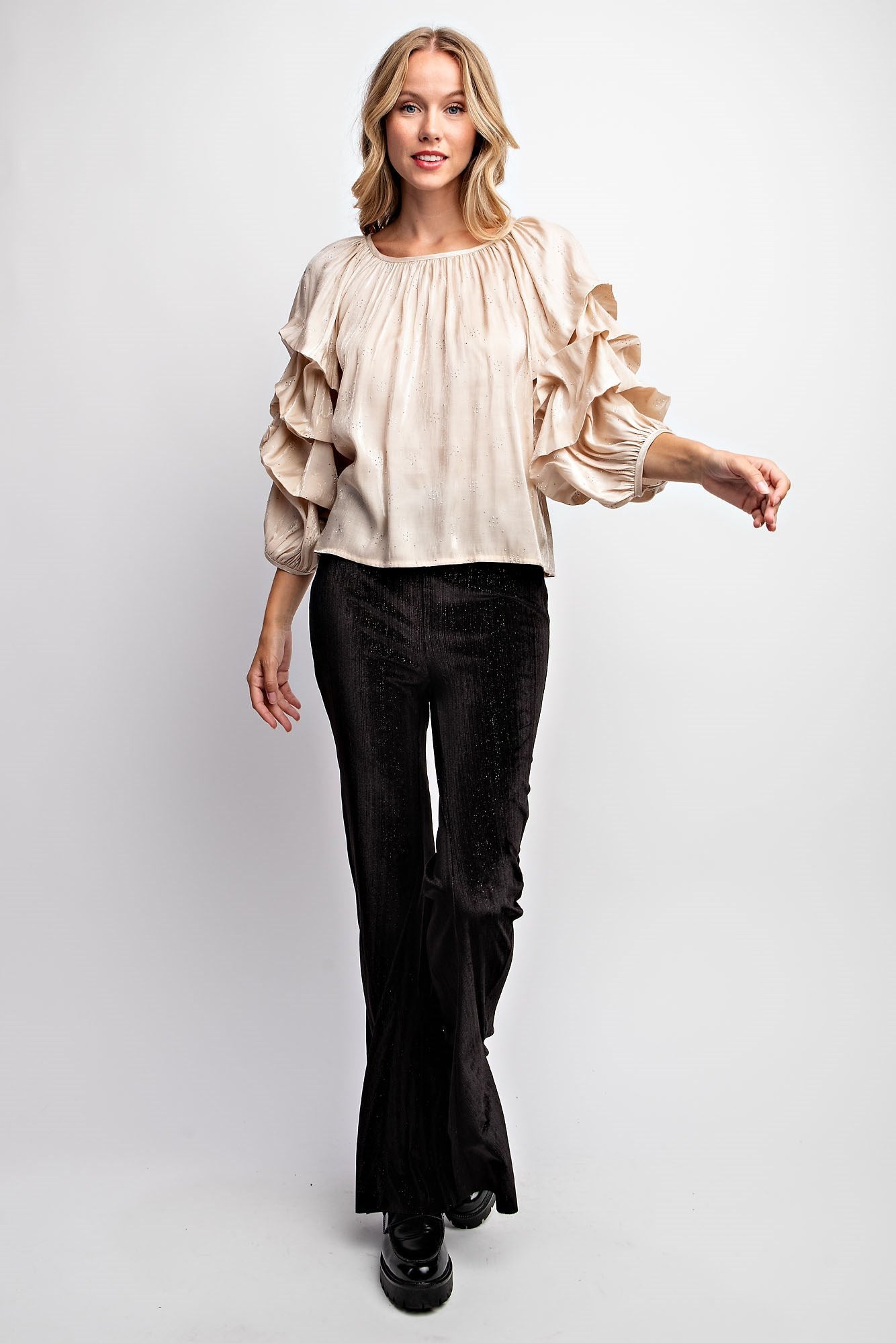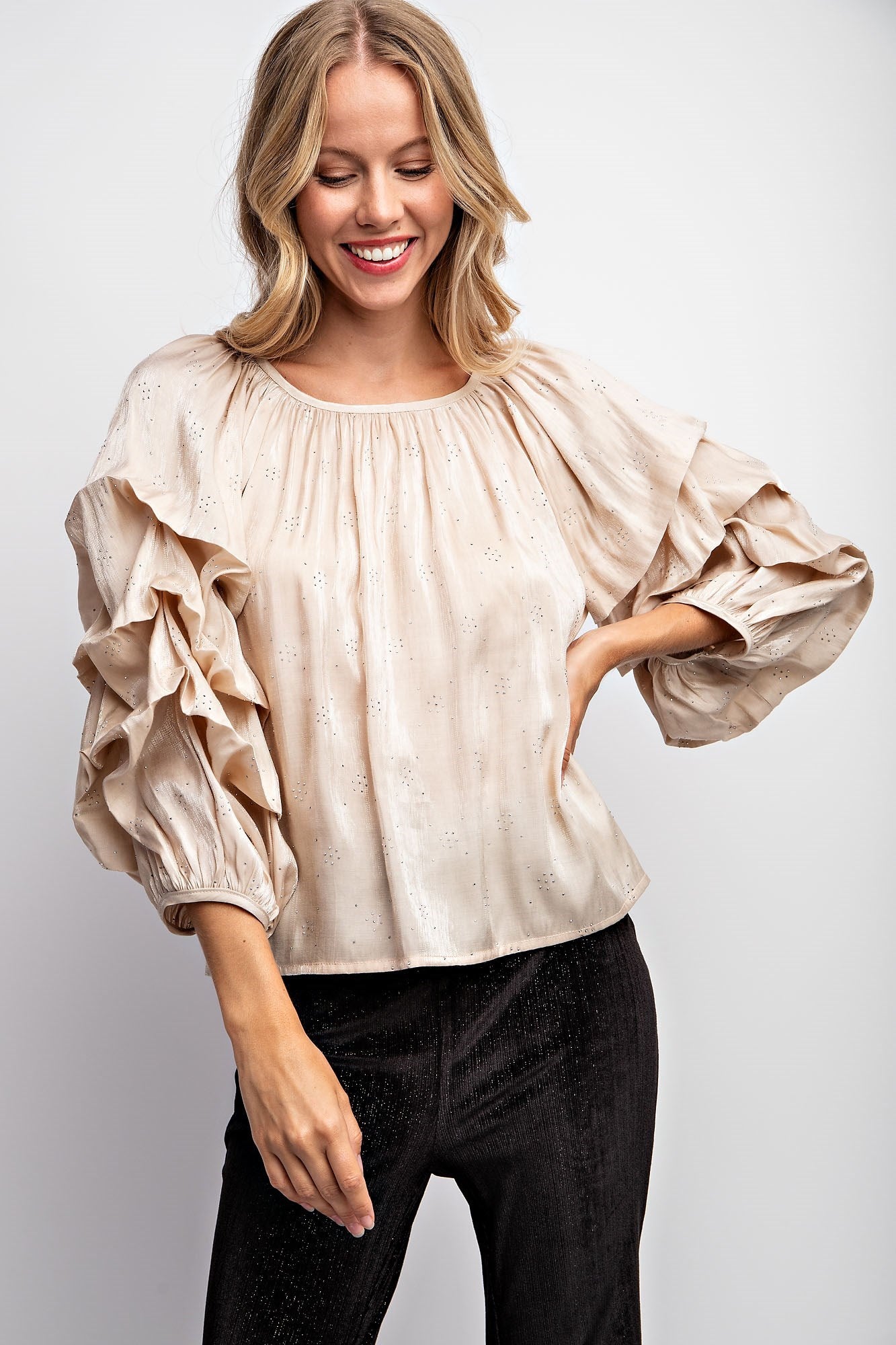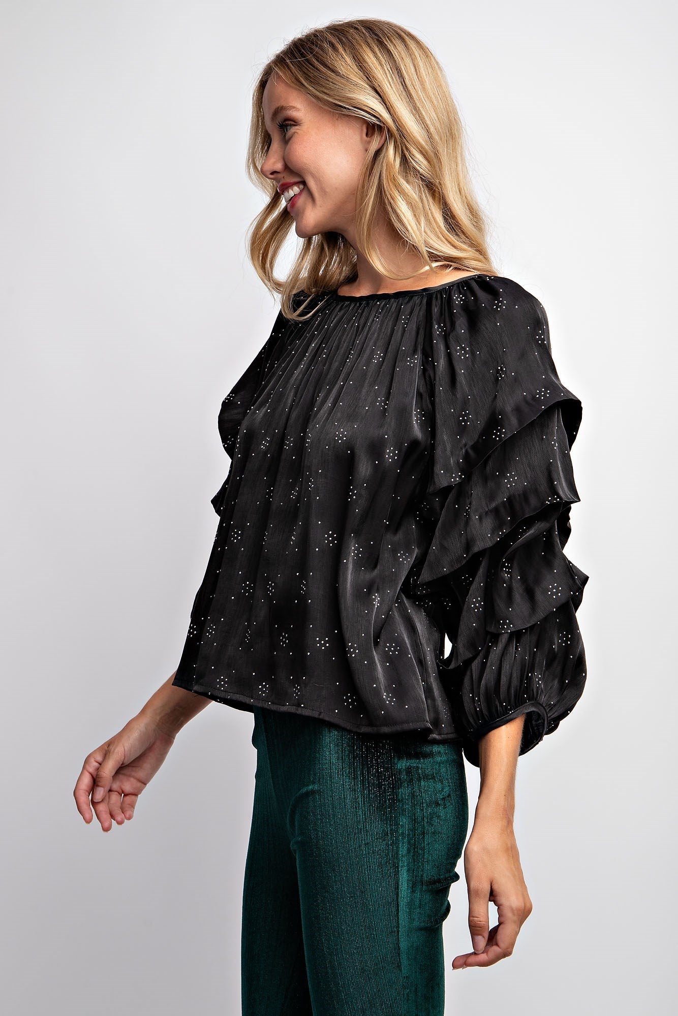 TIERED PUFF SLEEVE SATIN BLOUSE